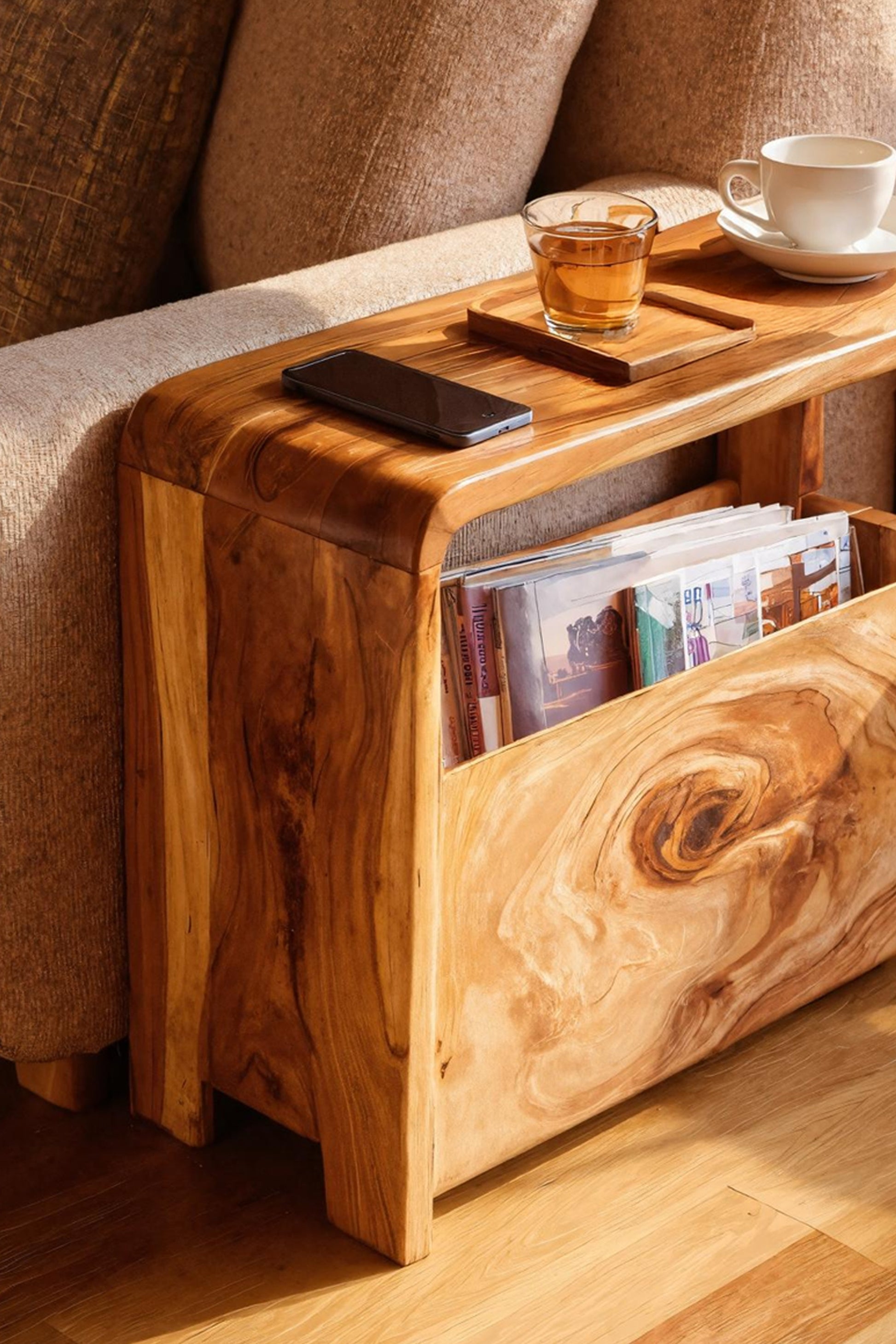Add a touch of natural sophistication to your home with the Handcrafted Live Edge Side Table For Elegant Furniture. Made from solid wood and finished with a striking live edge, this table blends organic beauty with refined craftsmanship. Its compact, versatile design fits perfectly beside a sofa or accent chair, offering a stylish surface for décor or daily essentials while elevating your space with an elegant, nature-inspired accent.