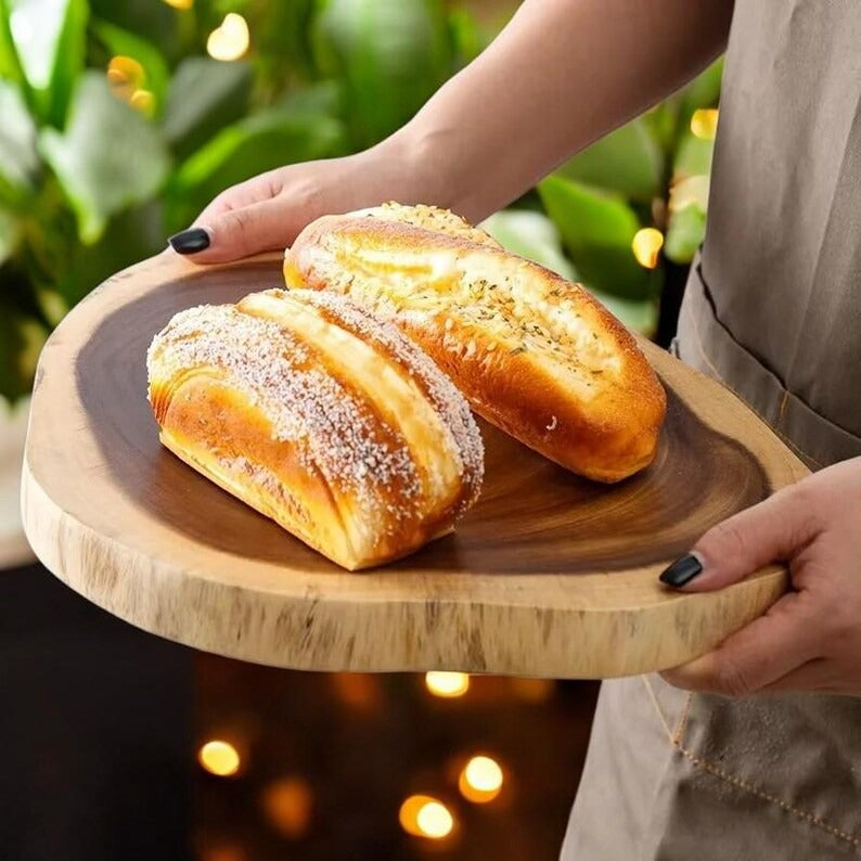 Perfect for slicing fruits, cutting bread, prepping ingredients, or serving pastries and snacks this board blends functionality with rustic charm.