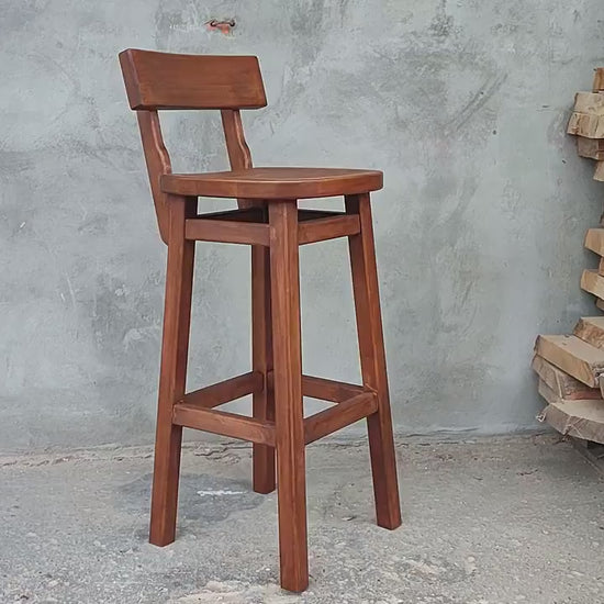 The High Brown Chair, crafted from natural wood and designed for comfort and style. Perfect for bar counters, this chair features a comfortable seat and a classic high-back design, making it an ideal addition to your country house or farmhouse decor. Its vintage charm adds a touch of elegance to any bar or kitchen, providing both sturdy and stylish seating.
