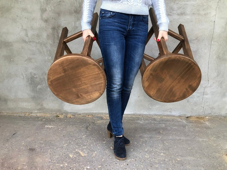 Rustic Elegance Wooden Bar Stool with Round Seat – Handcrafted Solid Wood Counter Seating
